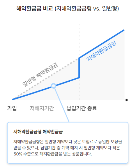 납입기간 중 해지할 경우 일반형 대비 보험 해약 환급금이 적음
